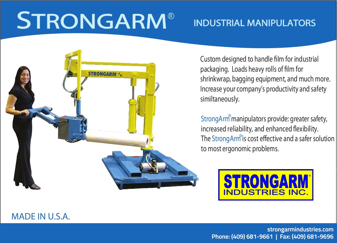 As the leading U.S. manufacturer of industrial manipulators, Strongarm Industries has designed solutions that are currently in use by hundreds of different industries, creating safer, more efficient workflows.